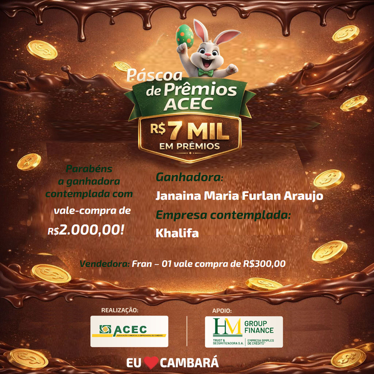 Sorteio da Promoção de Páscoa da ACEC em parceria com a HM GROUP FINANCE.